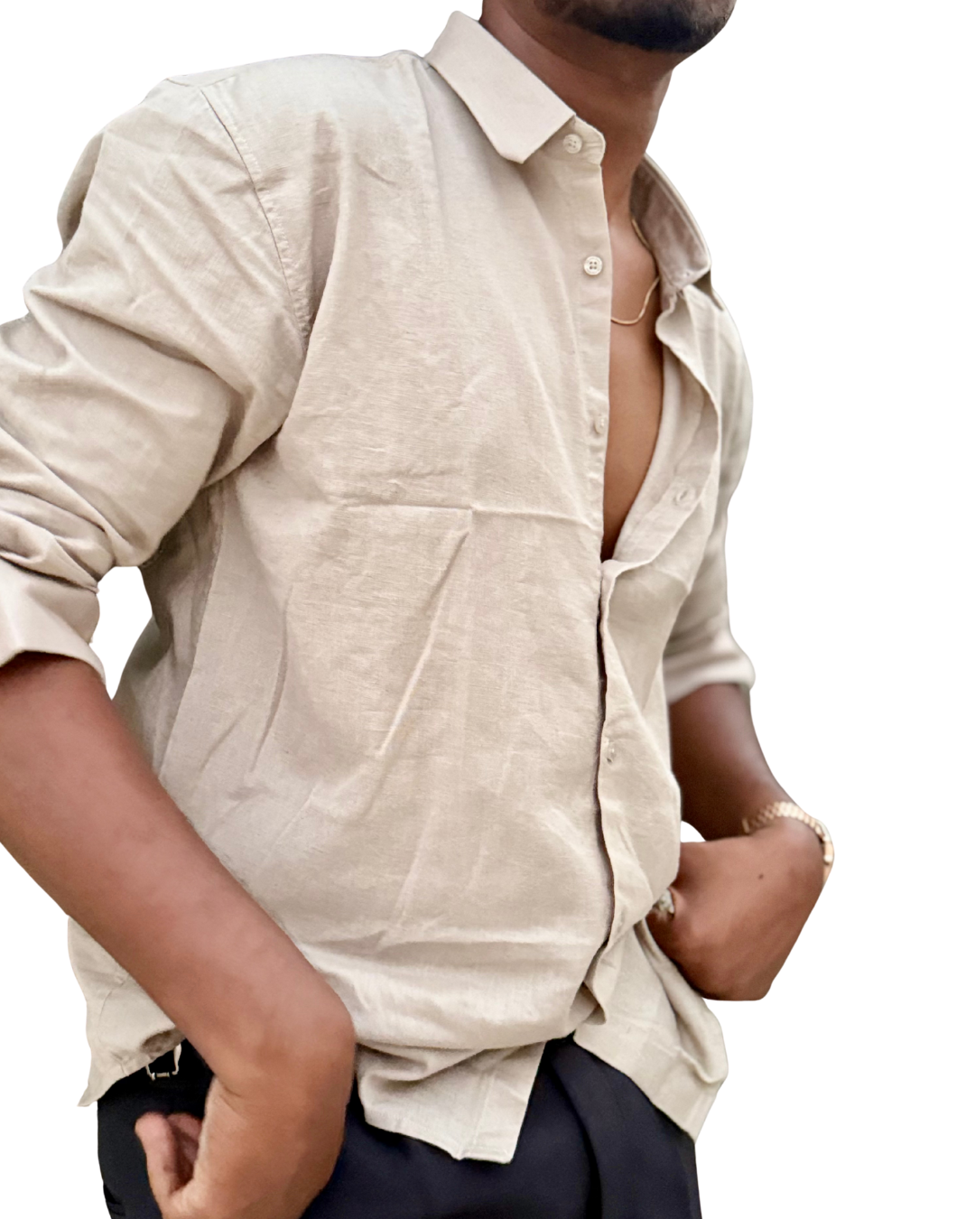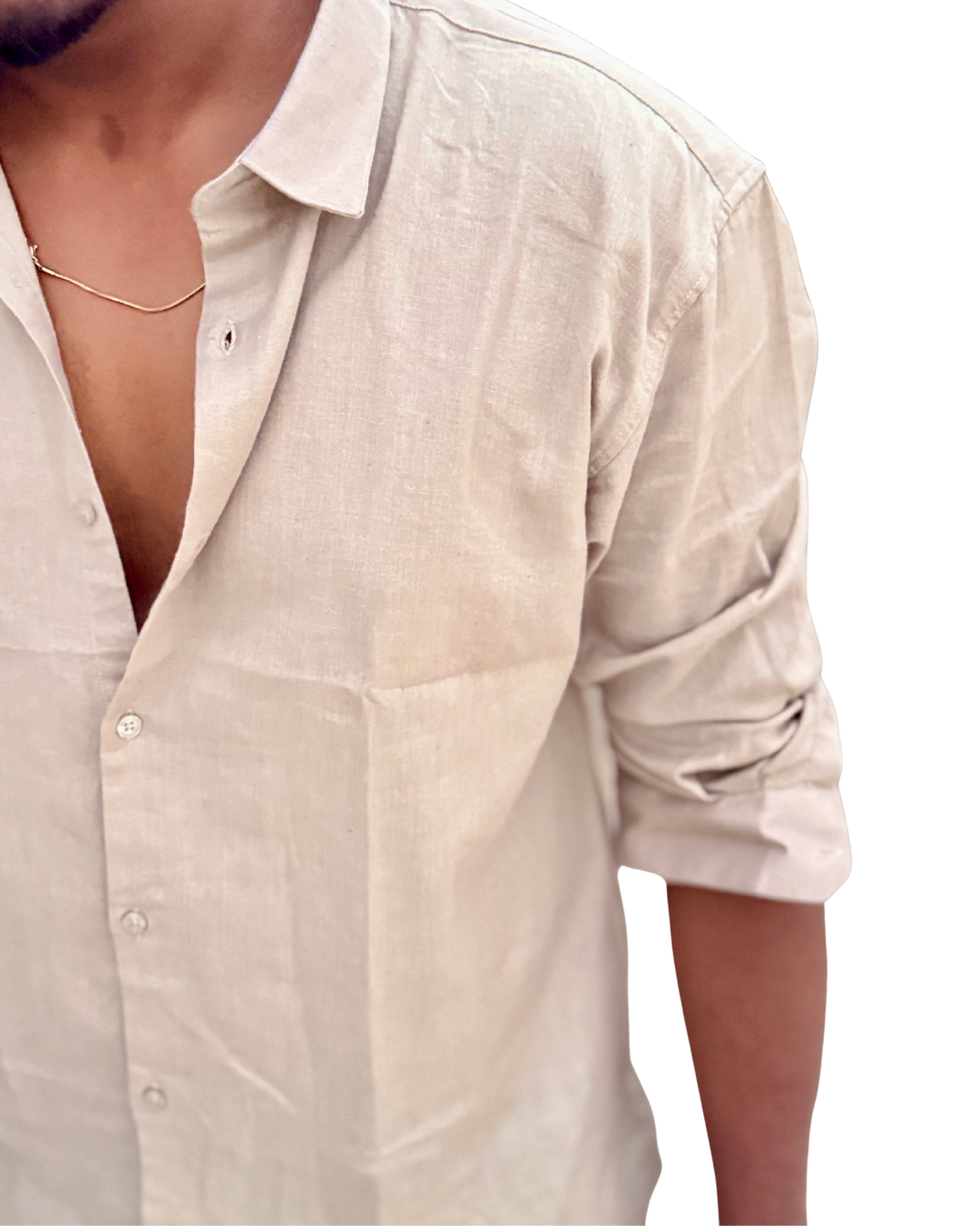 With its breathable weave, relaxed drape, and lightly textured finish, this shirt keeps you cool while elevating your everyday style. The classic collar, rolled sleeves, and clean detailing make it perfect for casual outings, evening plans, and minimal luxury looks.