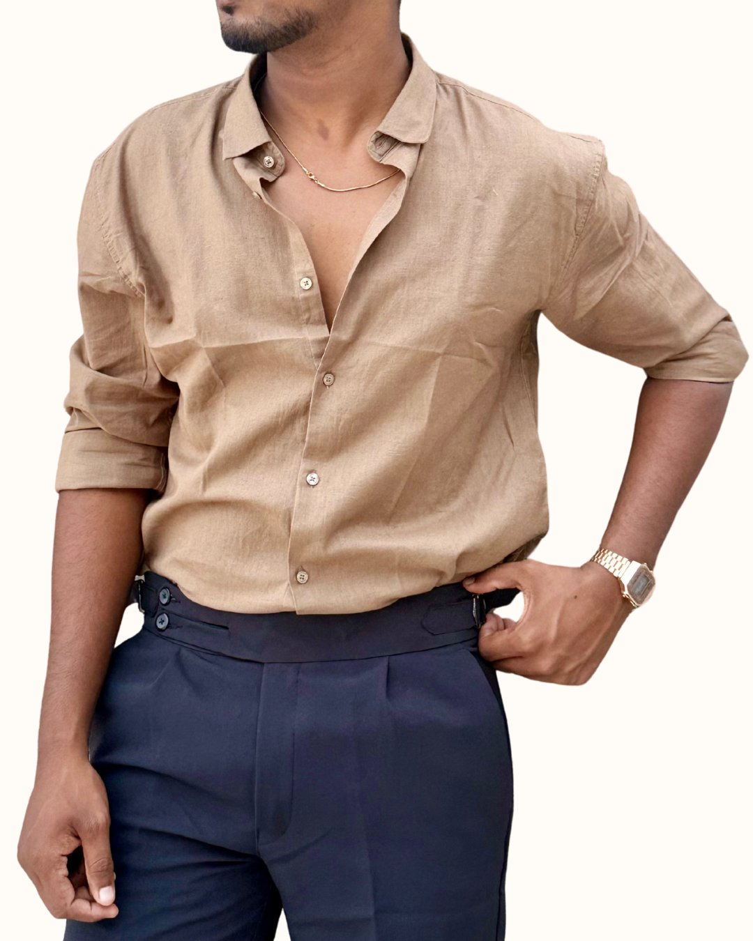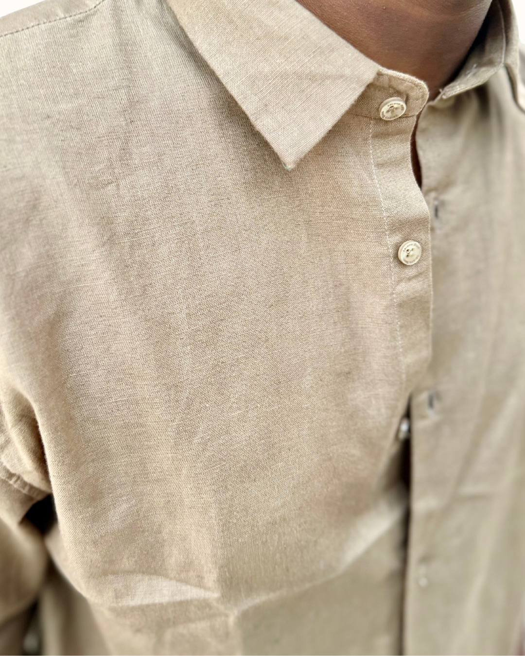 Crafted from 100% pure Irish linen, this Sandstone Beige shirt brings effortless elegance to everyday dressing. Lightweight, breathable, and naturally textured, it’s designed to keep you cool while adding a refined, earthy charm to your look.