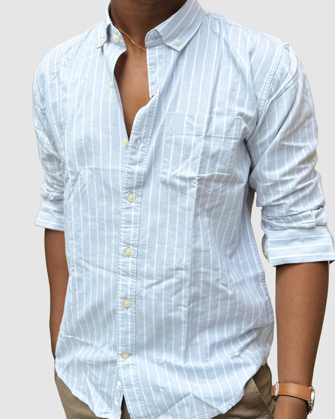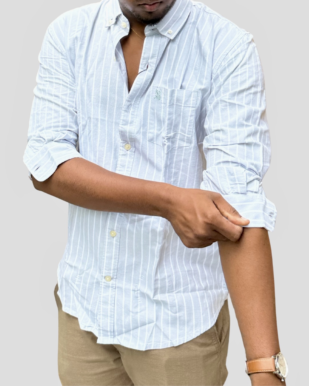 Step into subtle sophistication with this Ice White Stripe Shirt designed for comfort structure and everyday elegance.